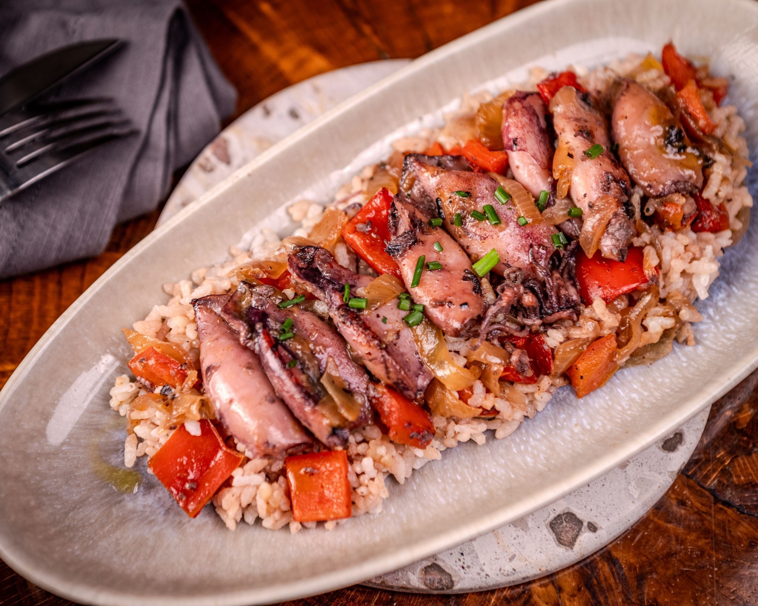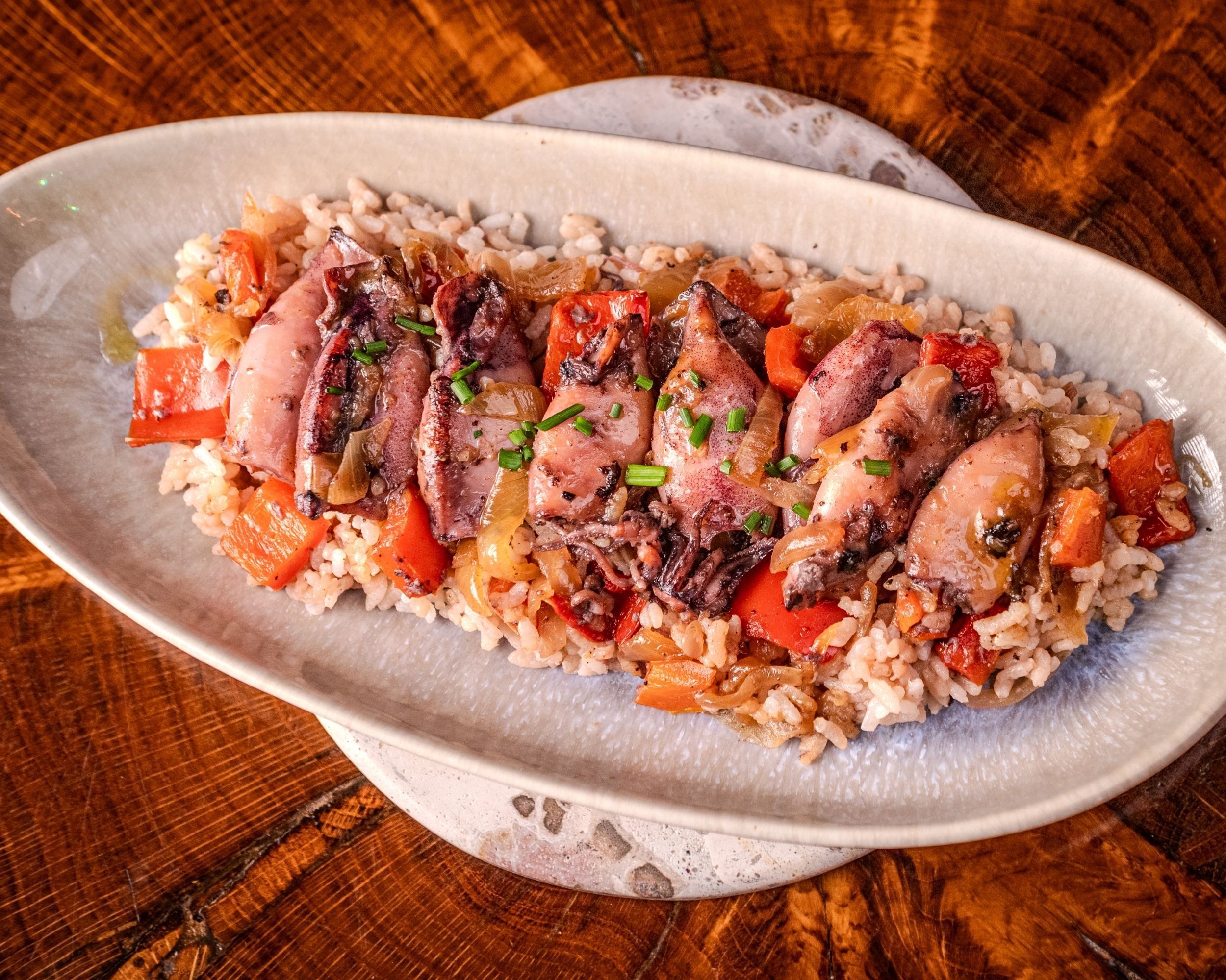 Un plato que conquista por su aroma y ternura. Nuestros chipirones encebollados con arroz son ese gusto casero que reconforta y te transporta al sabor del mar en familia.